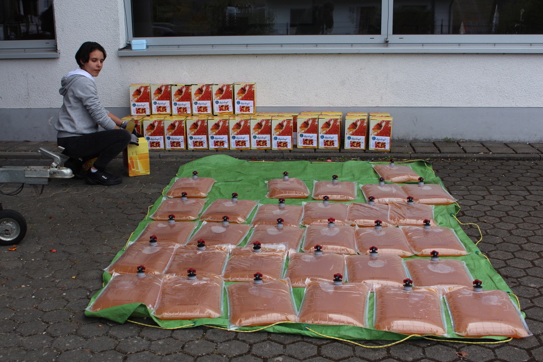 „ Den Schülern bereitete es viel Spaß, an mehreren Tagen auf den Streuobstwiesen der Region Äpfel zu sammeln und nun sie dann selbst zu verarbeiten “, erklärte Lehrer Bernhard Irsch zu der Aktion.