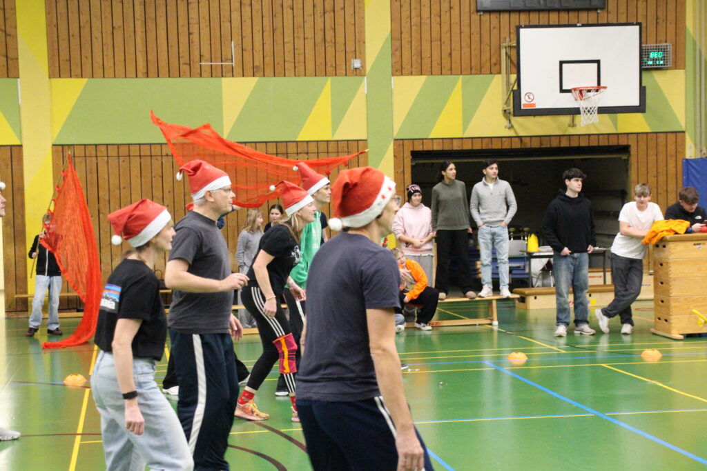 Meyer, unterstützt von Sportlehrerin Katja Schmelzer sowie Schülerinnen und Schülern der FOS,